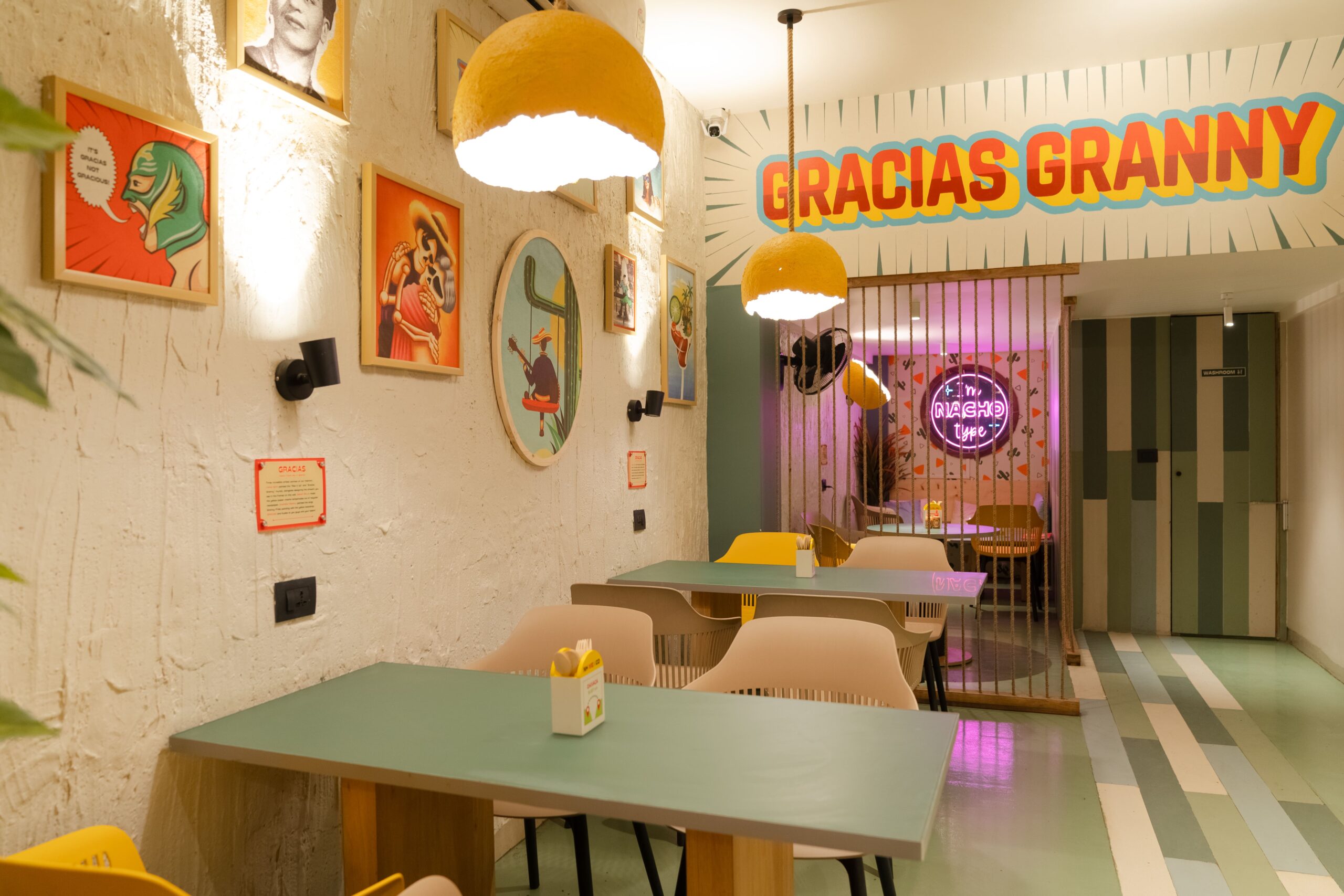 Gracias Granny CBD Belapur is where it all began! This is our first home, as can be seen in how it is two shops combined (we grew step by step). Quirky art, vibrant seating, neon signs; GG CBD Belapur has been a home to our many regulars since our story began.